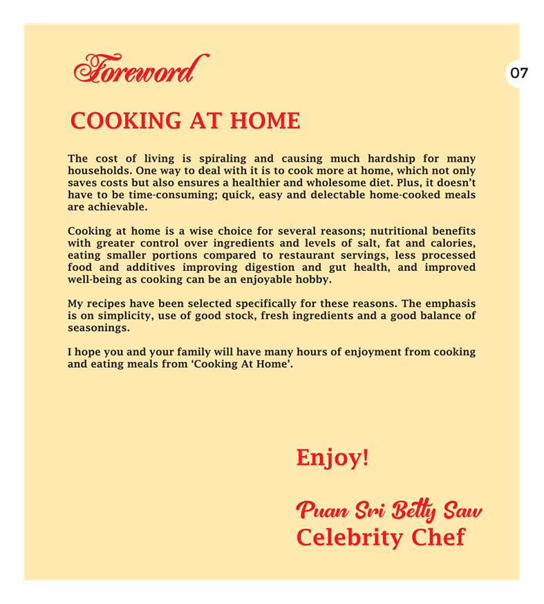 Celebrity Chef, Puan Sri Betty Saw has put up some 293 pages of recipes and photos.